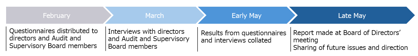 - Based on this evaluation of effectiveness, we will further promote efforts to enhance the functions of the Board of Directors by utilizing off-site meetings and other means.